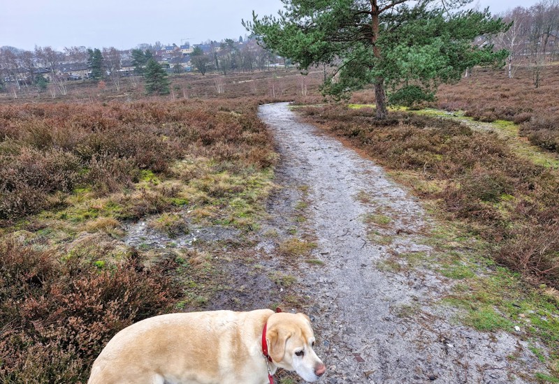 We kunnen kiezen uit een wandeling van 3,7 km (blauw), 6,5 km (rood) of een combinatie van rood en blauw (5 km).