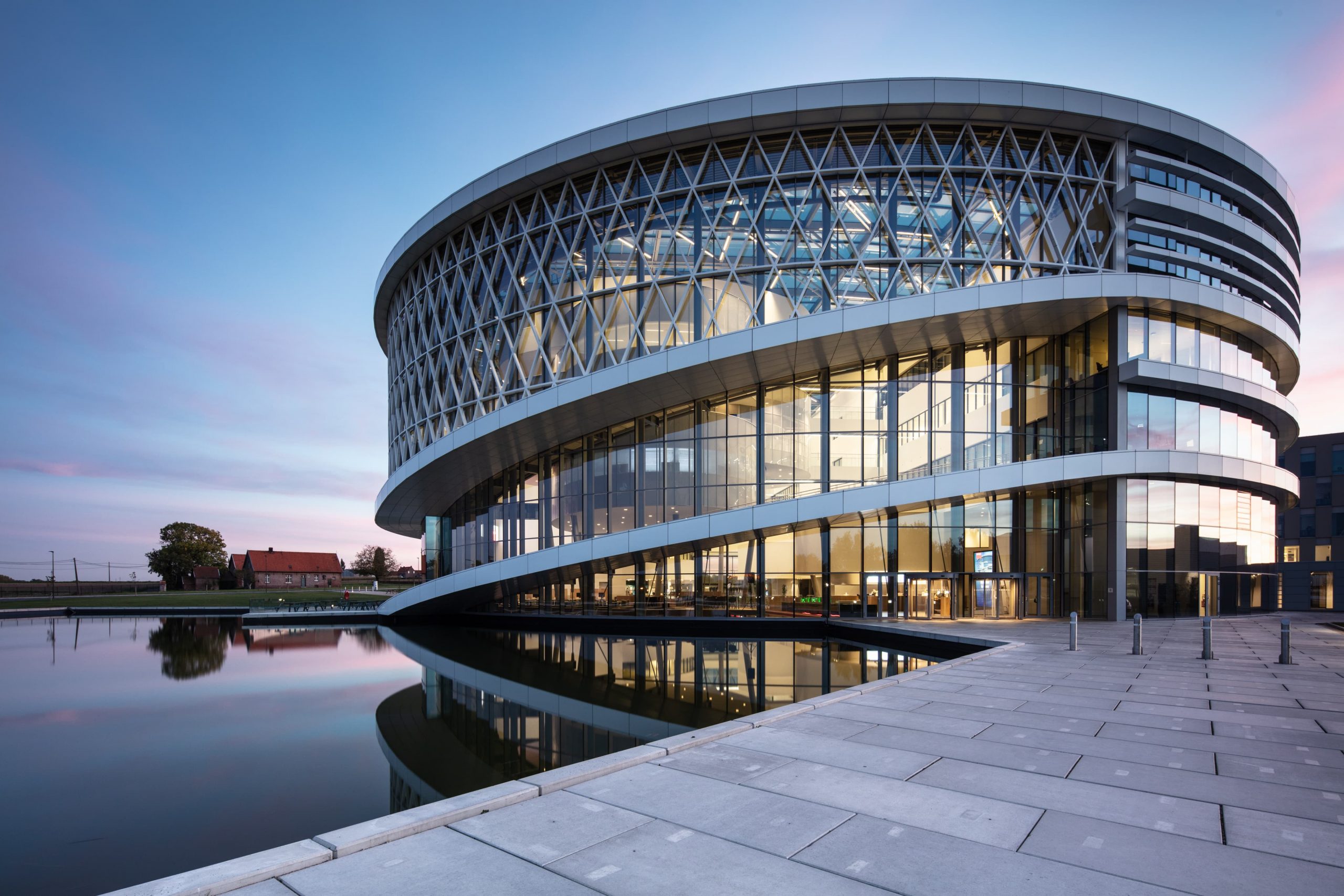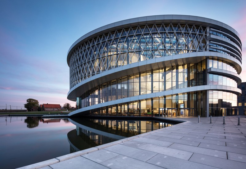 Hoofdgebouw van BARCO in het Kennedypark te Kortrijk