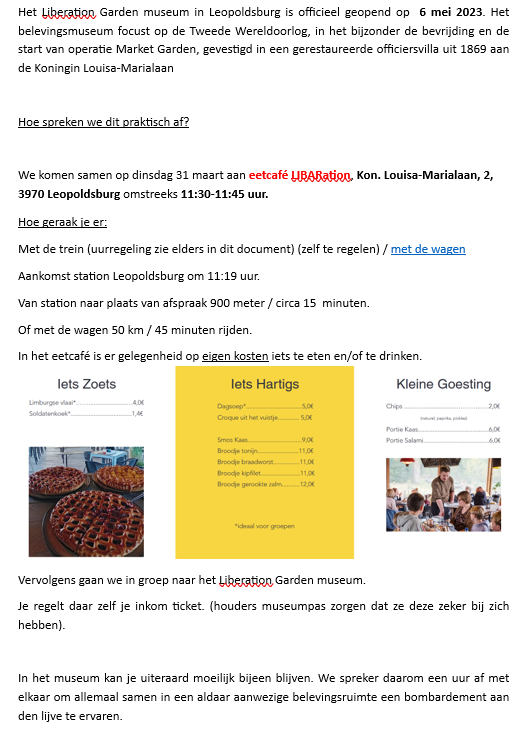 Maar….. op onze laatste bestuursvergadering namen we een vliegende start en werd er voorgesteld om op dinsdag 31 maart naar Leopoldsburg te reizen.