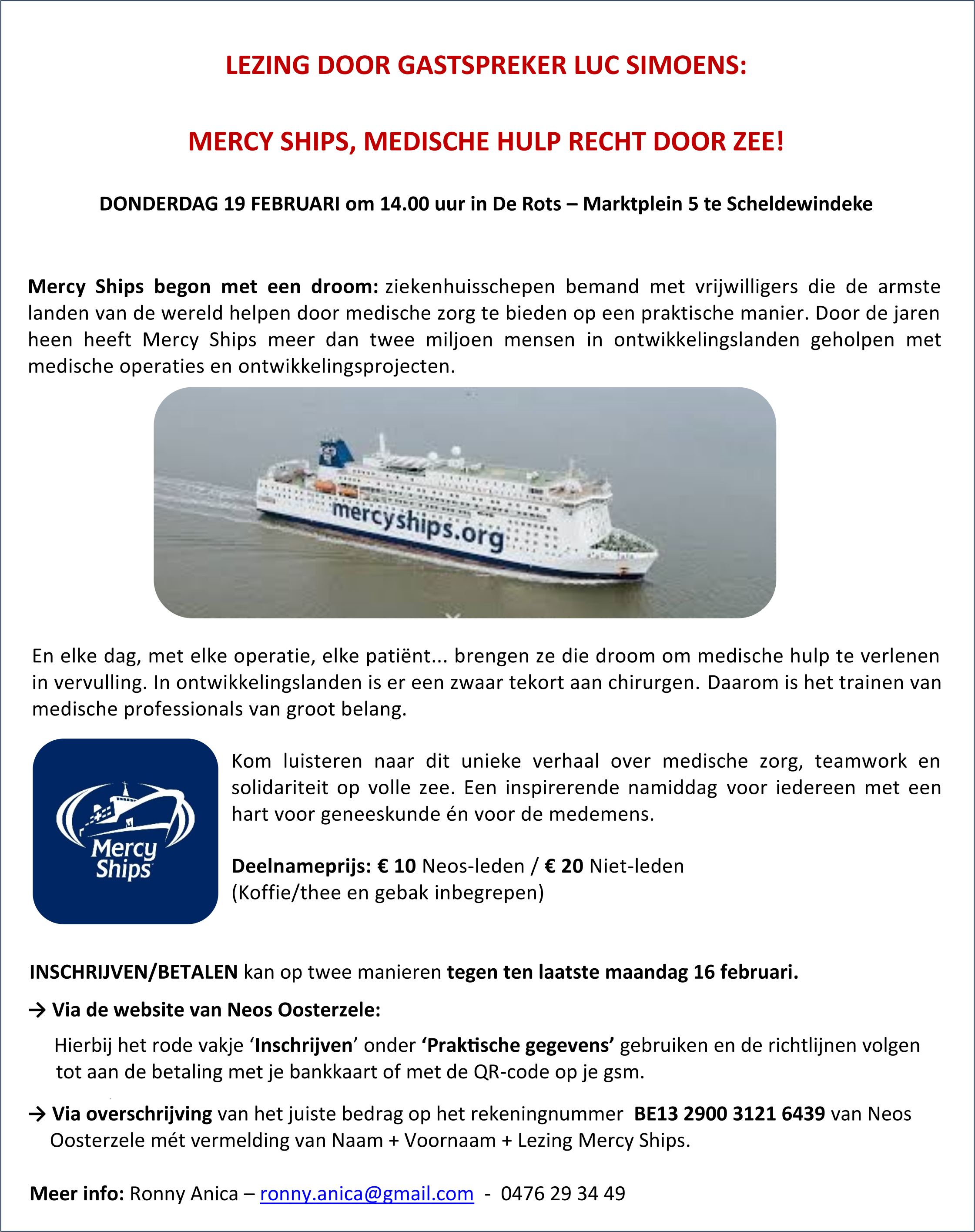 Lezing Mercy Ships: Medische hulp recht door zee