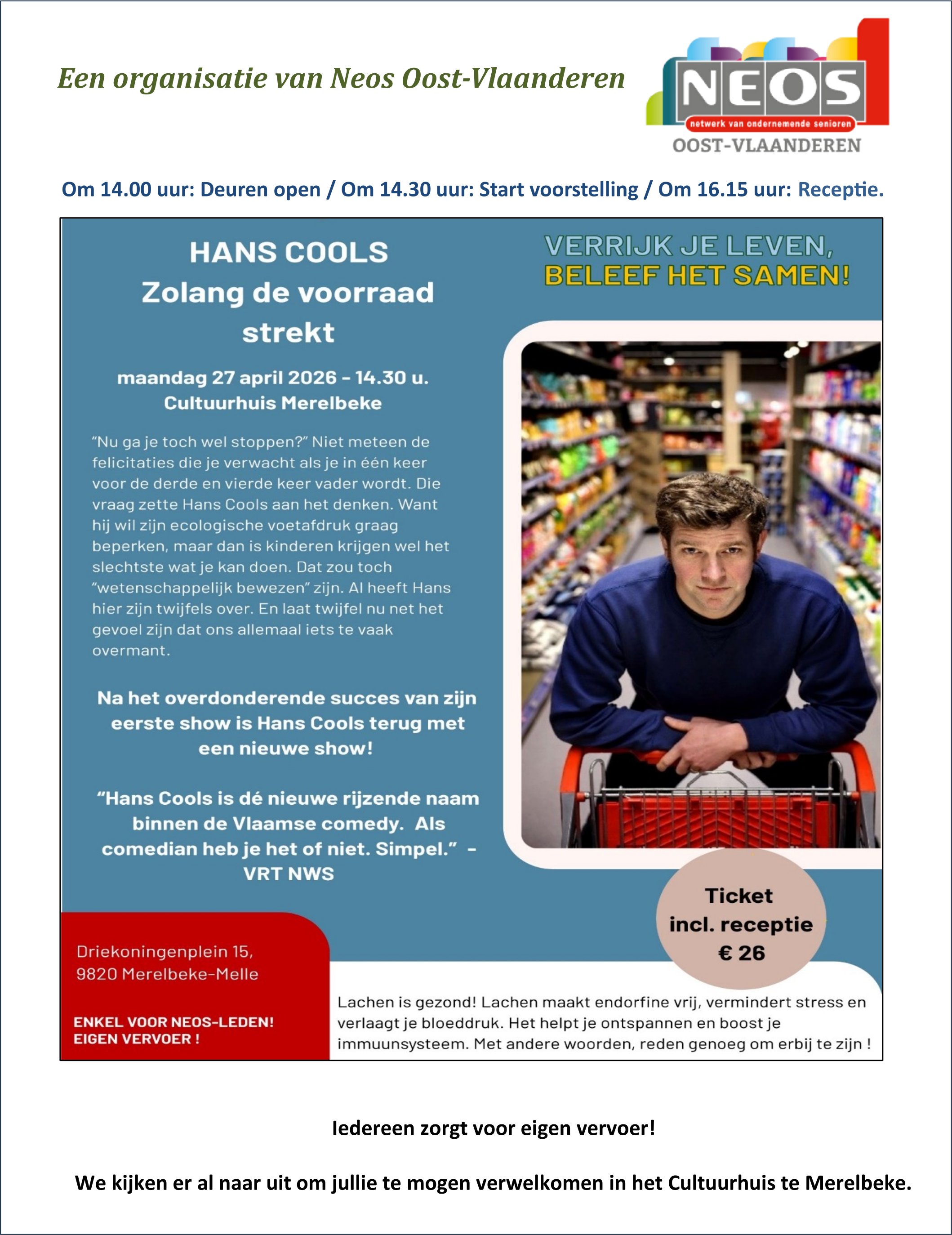 27-04-2026 Comedy met Hans Cools! Inschrijvingen zijn afgesloten.