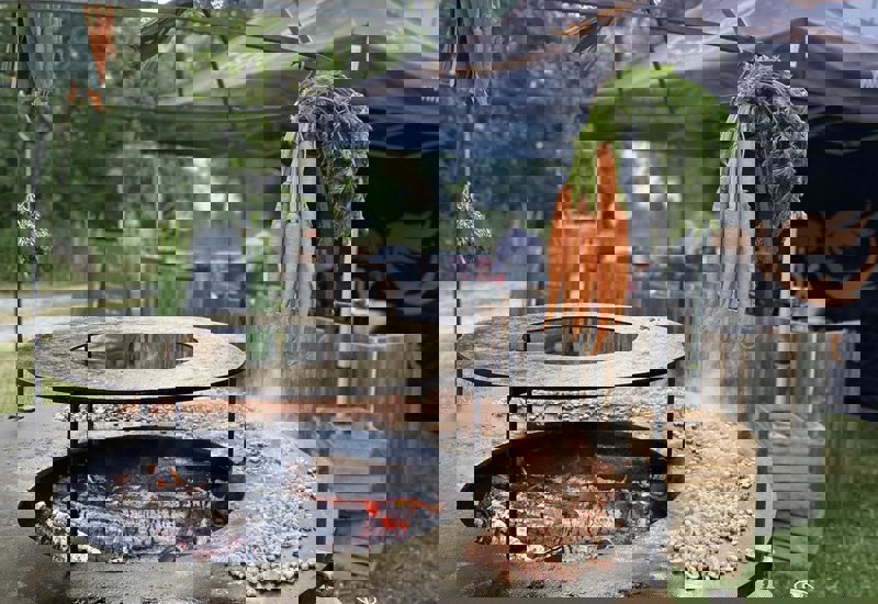 13:30 | BBQ met een mix van vlees, groenten, warme en koude sausjes, aardappel met lookboter en stokbrood + 1 gewone consumptie inbegrepen |