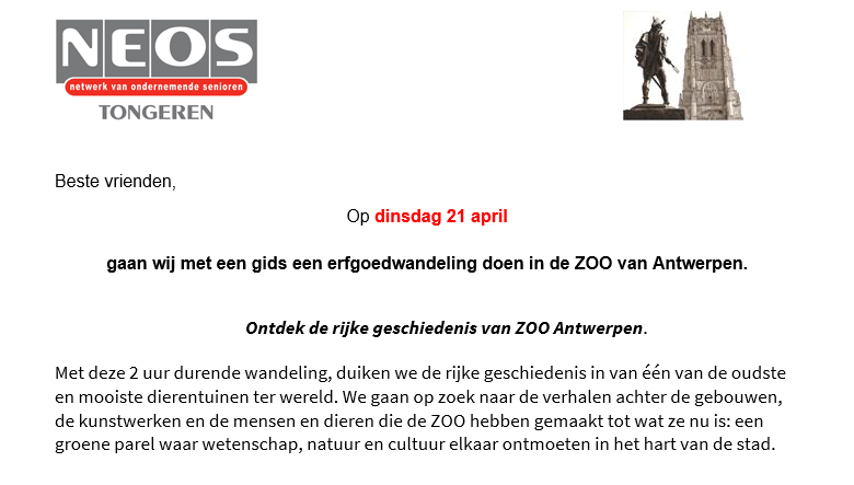 Noteer ook al in je agenda dat de wandeling van maart doorgaat op vrijdag 20 maart ipv vrijdag 27 maart.