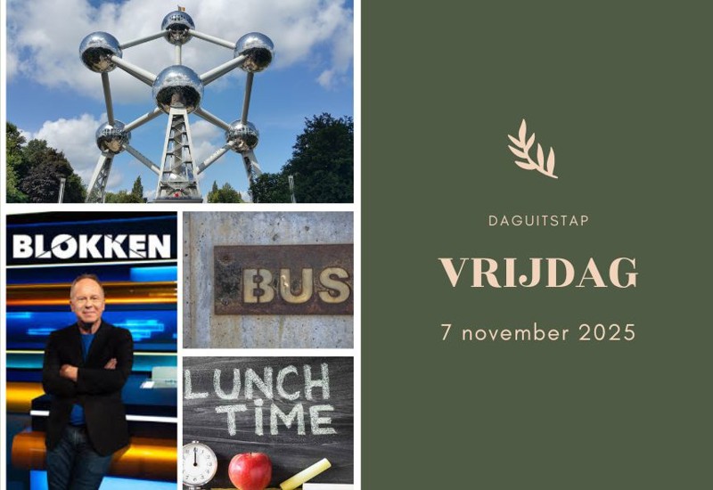 Deze daguitstap naar Brussel met luxe autocar, het bijwonen van twee opnames van “Blokken”, verzorgde 3-gangenlunch en bezoek aan het Atomium onder begeleiding van een plaatselijke gids, kan georganiseerd worden voor 70 Euro.