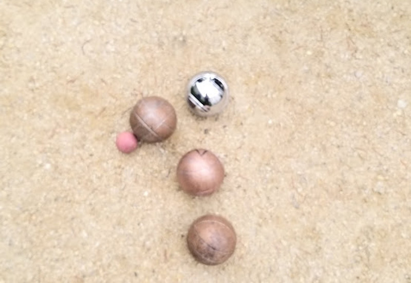 Petanque wordt gespeeld met metalen ballen, een houten mikballetje en vanuit de grond getrokken cirkel.