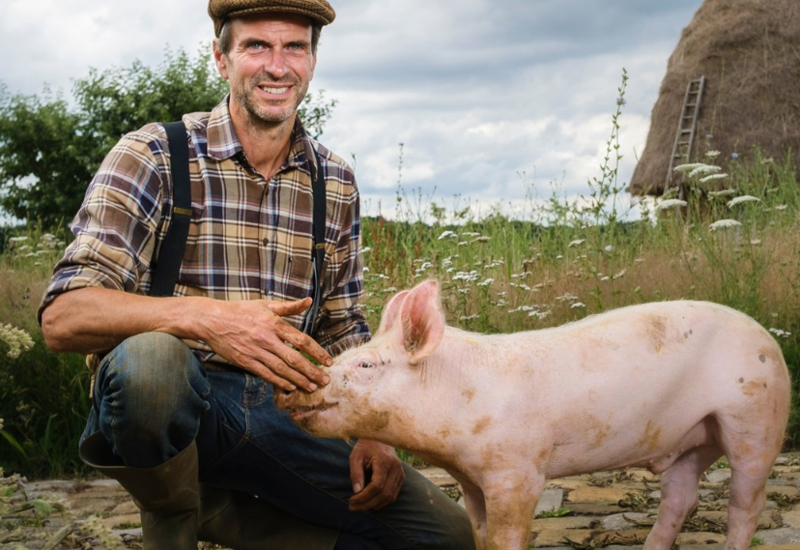 We wandelen door het mooie landschap naar de Venusberg, waar boer Peter ons een rondleiding geeft over het leven van zijn Vlaamse weidevarkens, die er onder de lindebomen lopen. Dat geeft het vlees een zeer specifieke smaak.