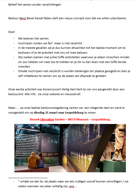 Bestuur Neos Bevel Kessel Nijlen stelt een nieuw concept voor dat we willen uitproberen.