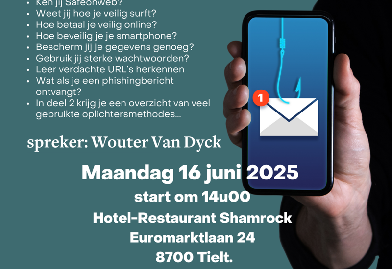 Inschrijven kan enkel door storting van 15 EUR (leden), 20 EUR (niet leden) op rek. Neos Tielt BE43 4679 1412 9101 met vermelding "laat je niet vangen". Zoals gewoonlijk is er koffie met gebak. Inschrijven tot uiterlijk 13 juni 2025.