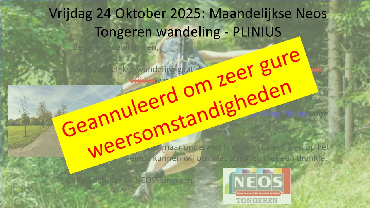 Maandelijkse Neos Tongeren Wandeling - Plinius: 0,00 euro voor leden
