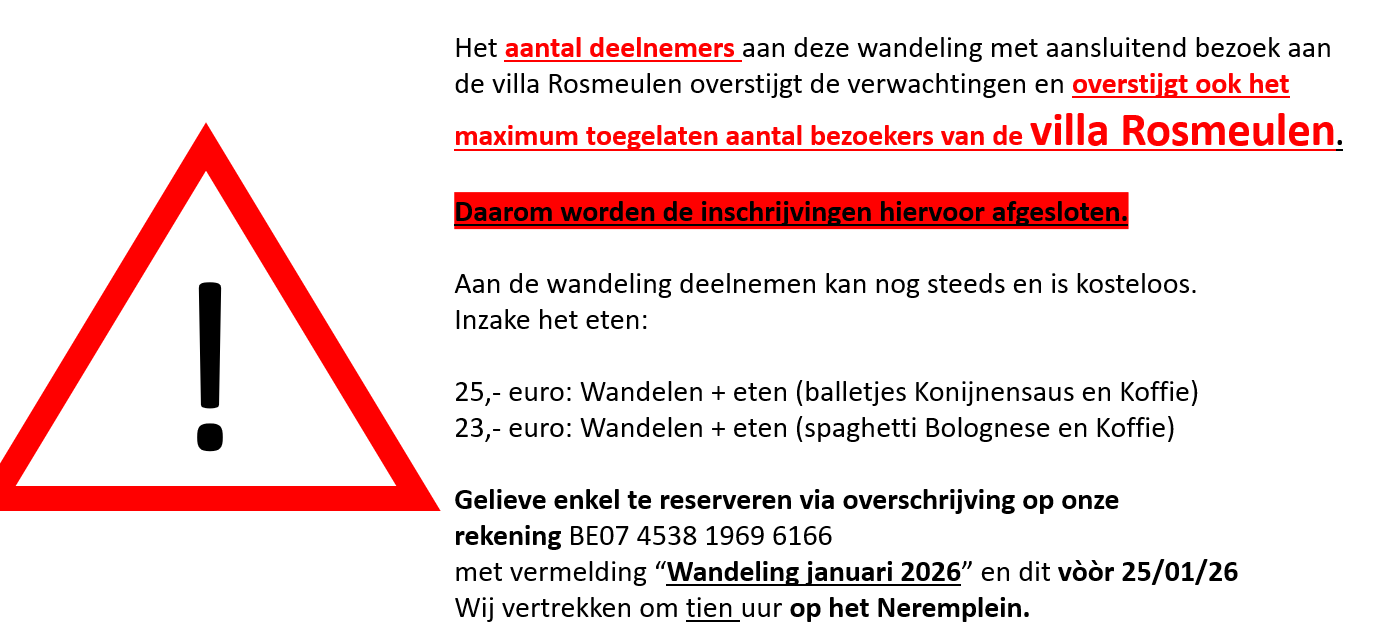 met vermelding “Wandeling januari 2026” en dit vòòr 25/01/26
